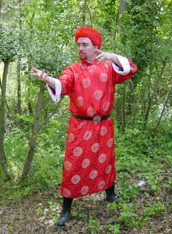 Silver, in scholarly garb.