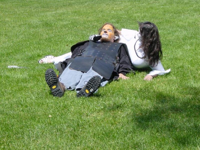 Our impromptu dressing room at Belgatos Park.